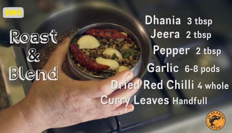Once cooled, blend them into a fine powder using a spice grinder or a mixer. Set aside 1 cup of this masala for the curry and store any leftovers in an airtight container. The masala should feel slightly coarse to touch but smooth enough to dissolve in the curry.