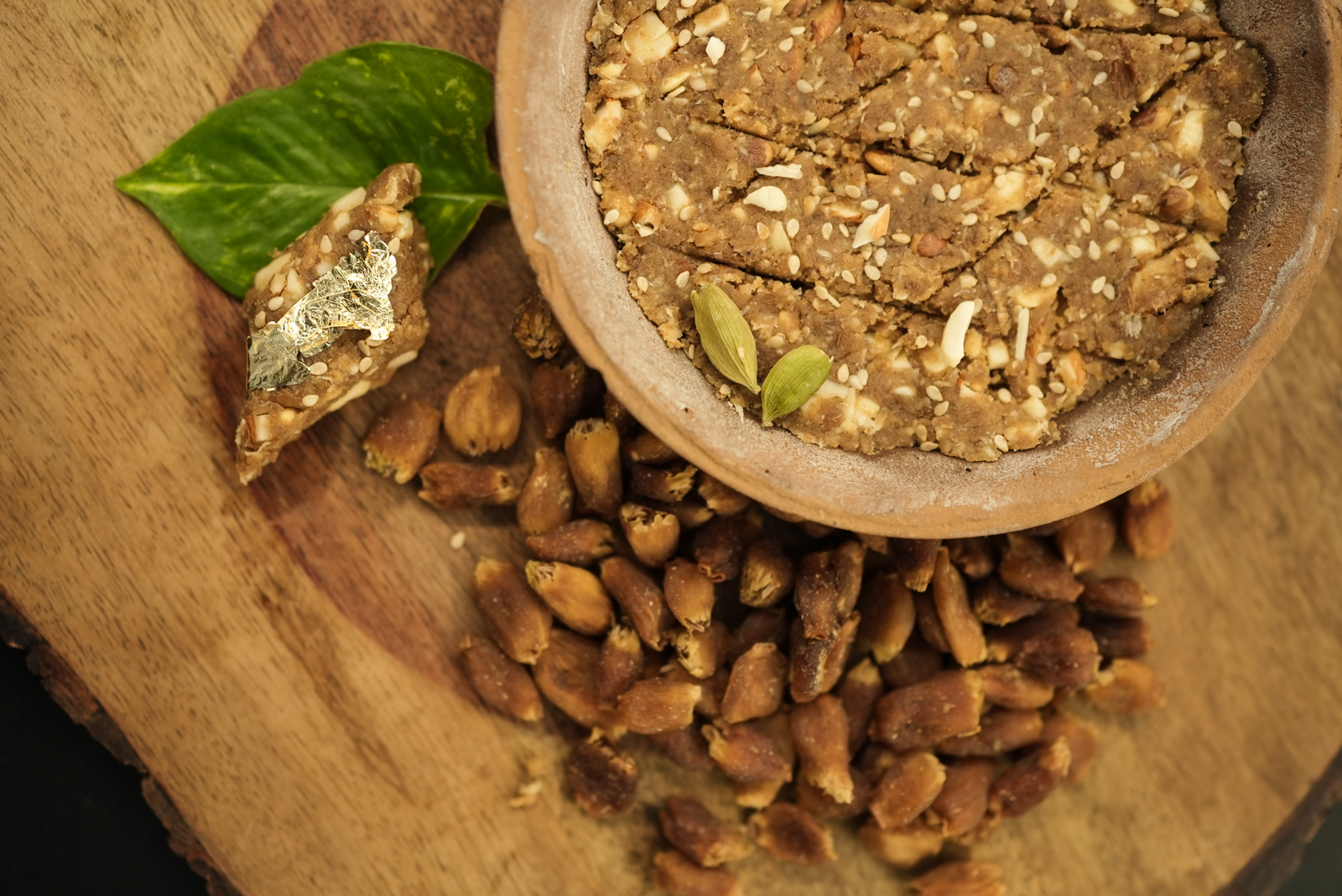 This barfi highlights the naturally sweet, floral notes of dried mahua flowers, making for a wholesome yet indulgent sweet for those looking to avoid refined sugars without compromising on flavour.