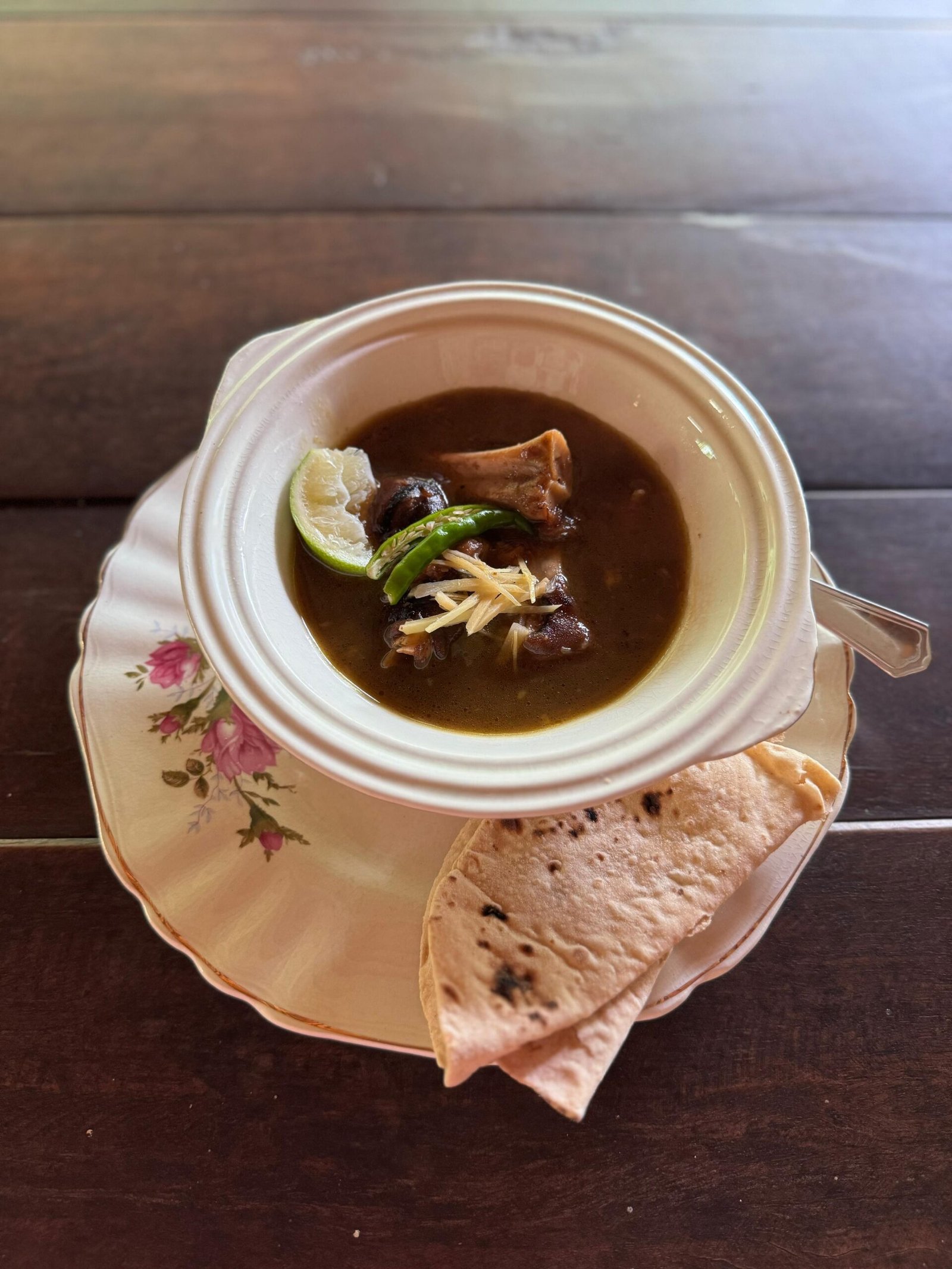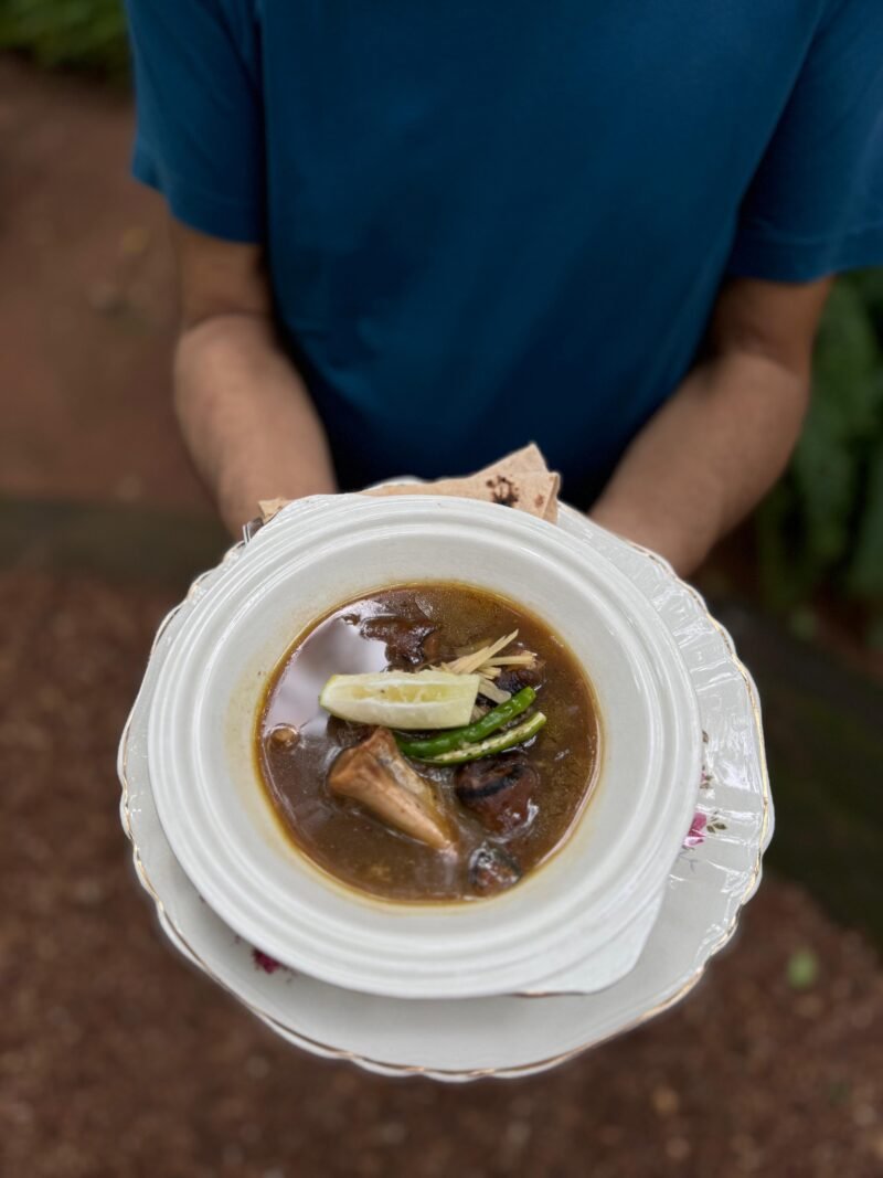 The mutton paya soup is now ready to serve. It is best enjoyed with khameeri roti or plain roti.