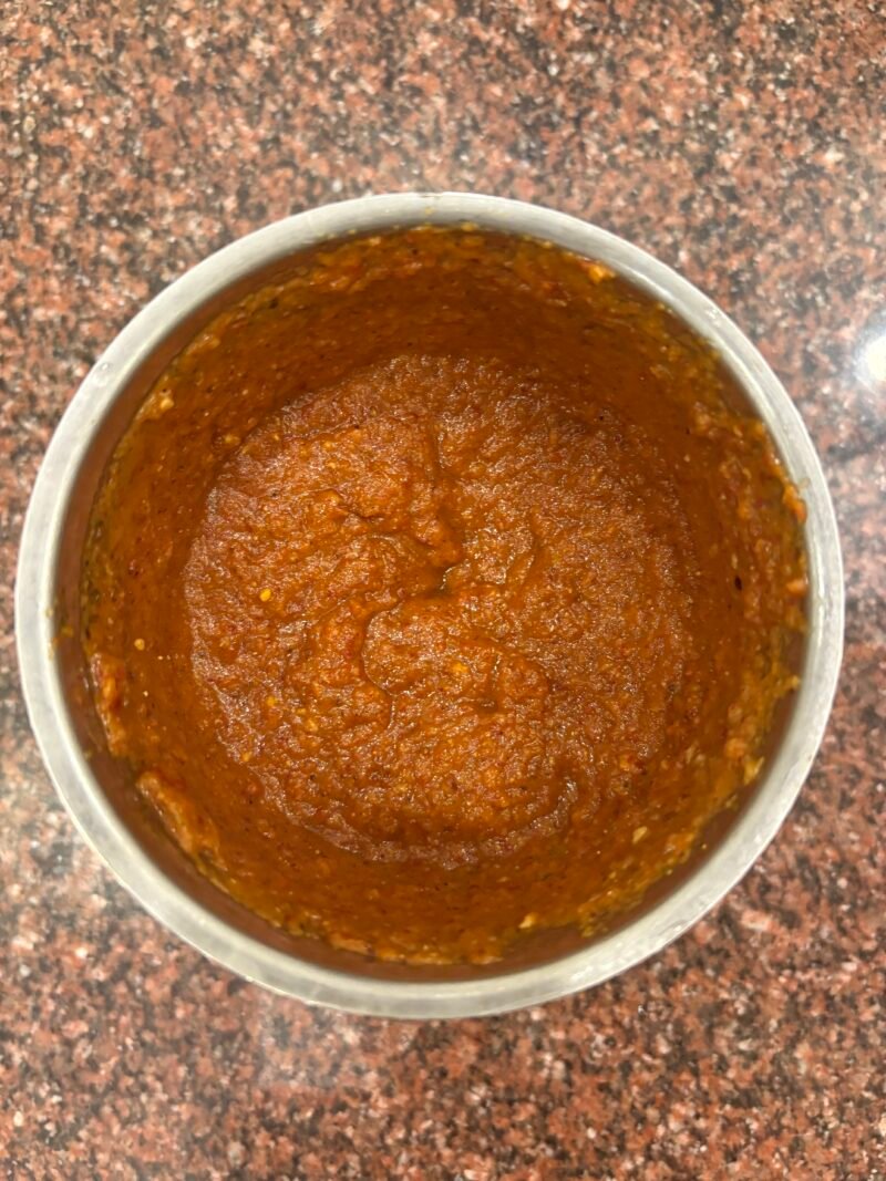 - The final gravy should be thick but not dry. Add water little by little if it becomes too thick while cooking.