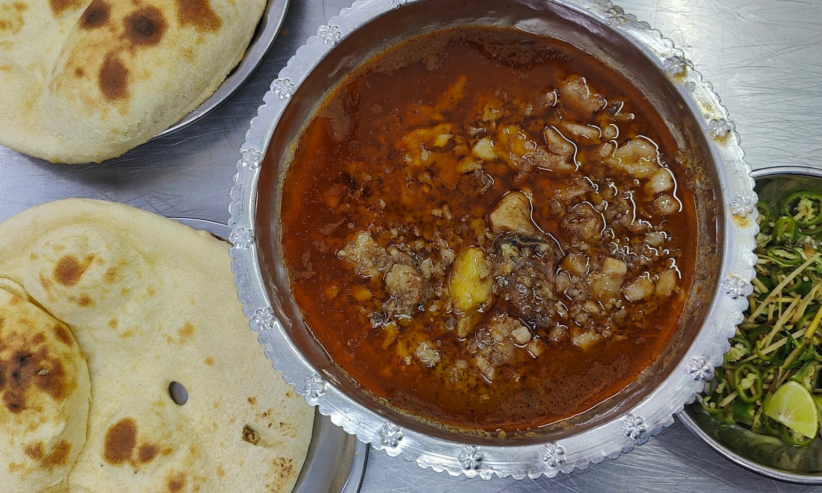 In his book Masala Mandi: A Guide to the World of Indian Spice Blends (2024), Sadaf writes, “Even with different variations or versions, one thing will always remain the same (luckily)—nihari will be slow-cooked overnight in large pots to ensure the flavour is absorbed into the meat. One benchmark, while preparing this dish, is that the meat should disintegrate and blend with the gravy. From Delhi’s Kallu Nihari, Haji Shabrati to Lucknow’s Rahim Nihari, to Kala Khan Nihari House in Rawalpindi and Zahid Nihari in Karachi—all follow the same template. While a standard accompaniment is khamiri roti, you can also ask for maghaz (brain) and extra butter or ghee on top.”