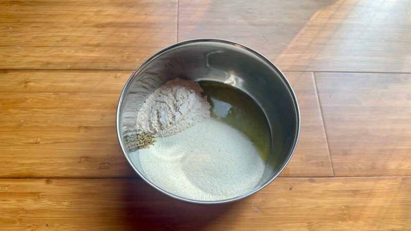 Gradually add more lukewarm water and begin kneading with your hands. Knead to form a soft dough. It should be slightly softer than regular dough, as the semolina will continue to absorb moisture.