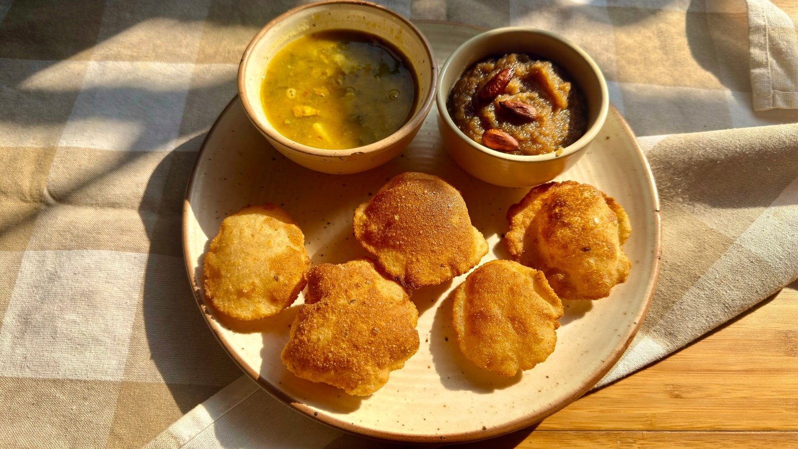 While Old Delhi is often known for its kebabs, kachoris, and Daulat ki Chaat, the nagori—a crisp semolina-based poori, slightly larger than a gol gappa and meant to be stuffed with halwa and aloo—is fading from popular memory. Kcamya now finds herself living by herself in Mumbai, where moments of homesickness arrive unexpectedly. Amid queues outside fashionable cafés, memories of oil-stained tiffins brimming with ghee-laden comfort crop up. Each bite of halwa-nagori, then and now, carries with it nostalgia and the enduring warmth of home.