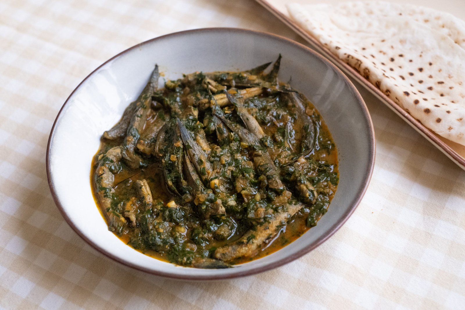This recipe for Nevti Curry has been contributed by Bhavesh Koli, who notes that nevti is offered as naivedya (a ritual offering) to the goddess Gauri owing to its availability during the Ganpati festival season and is traditionally associated with muddy habitats. Once abundant and easily found alive in the mud, nevti is now becoming rarer to find, often requiring weeks of searching, thereby affecting its consumption. This means that Bhavesh eats it only once a year, on the second day of the Gauri festival.
