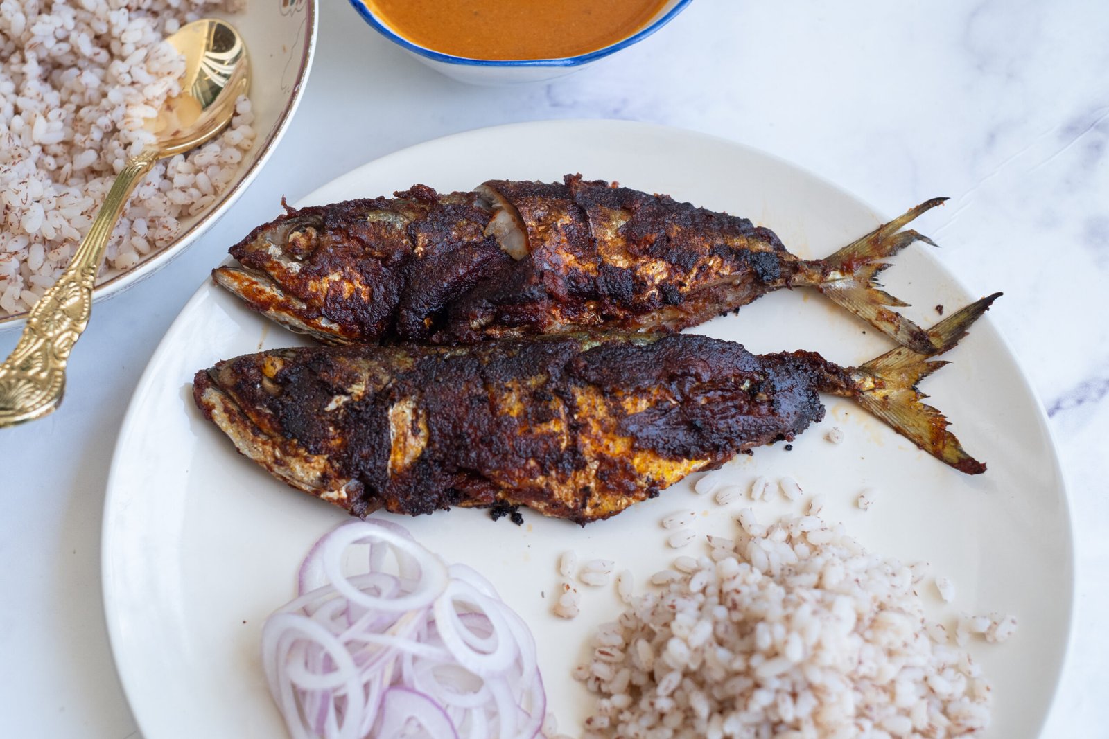 Grind to a thick, smooth, deep red paste. Add a splash of water only if needed to help grinding. The paste should be fiery red, glossy, and thick enough to hold in the slits of the fish. In terms of flavour, it should be hot, tangy, and slightly sweet.