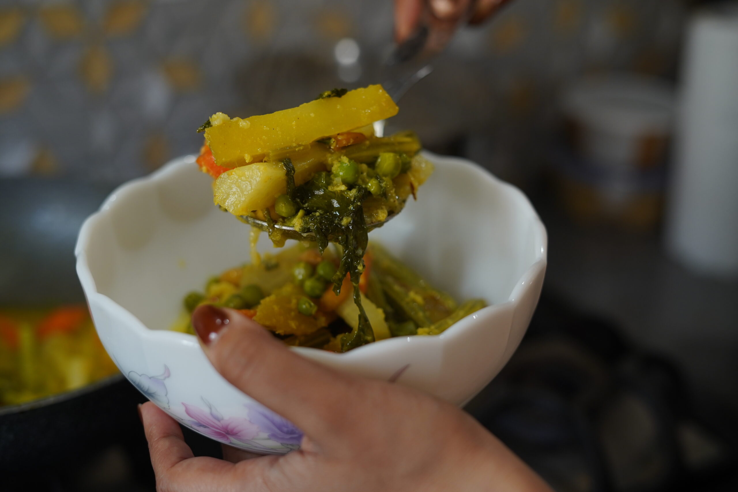 A chorchori (also spelt ‘charchari’ or ‘chadachadi’) is a dish common to West Bengal and Odisha, known for its medley of vegetables cooked with aromatic spices, minimal water and a slightly charred, sizzling finish. The name itself hints at this technique, referring to the gentle caramelisation that occurs as the vegetables fry in oil.